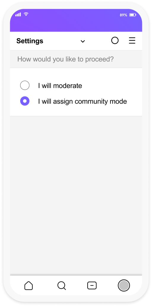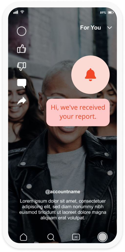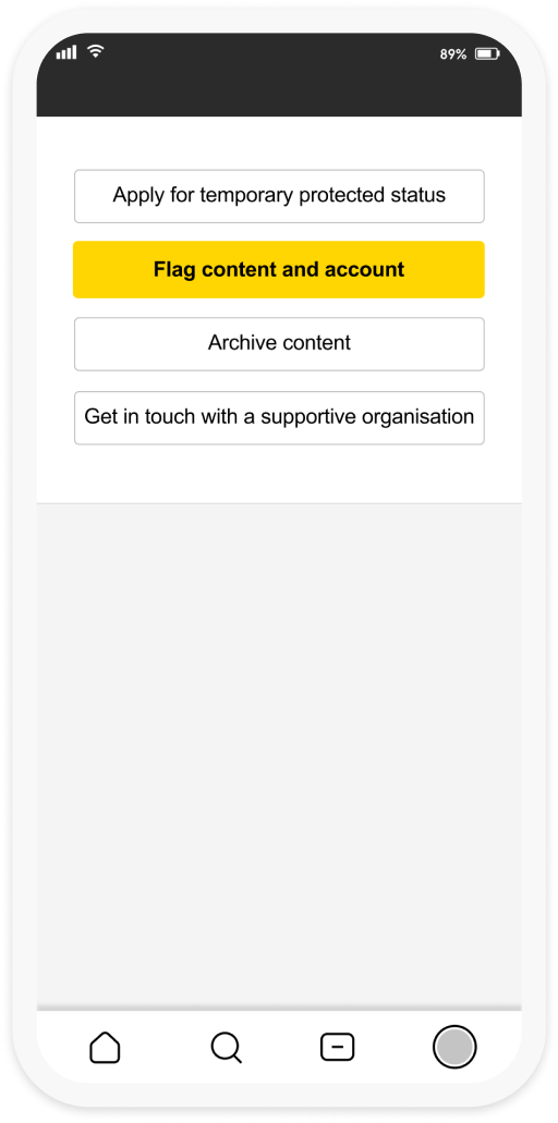 One Click allows users to set a time-limited safety mode. It can be toggled on when users want to shield themselves from potential pile-ons. It can be accessed and enabled in ‘one click’ from Settings, and from pages throughout the platform - i.e. feeds page, posts page or profile page. Safety mode features could include disabling comments or activating a ‘delay period’ for comments, activating a profanity or keyword filter, flagging keywords, and disabling tags.