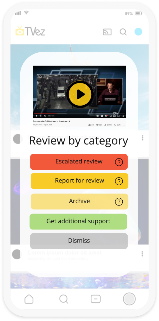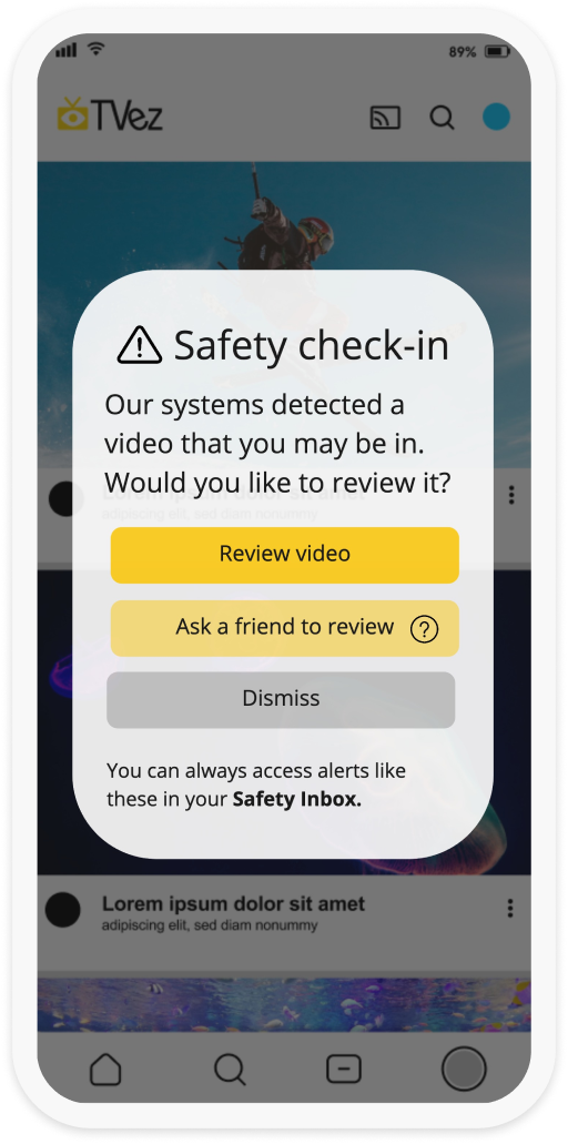 Image Shield allows users to gain more control over their content and images. A notification system will flag when the system recognizes the user in a video posted by an external account. They can then review the video or dismiss the notification. Users also have the option to delegate reviewing and reporting any abuse to trusted communities/contacts. They can also collect and archive any flagged content with a date stamp, platform, name, and flag filter.
