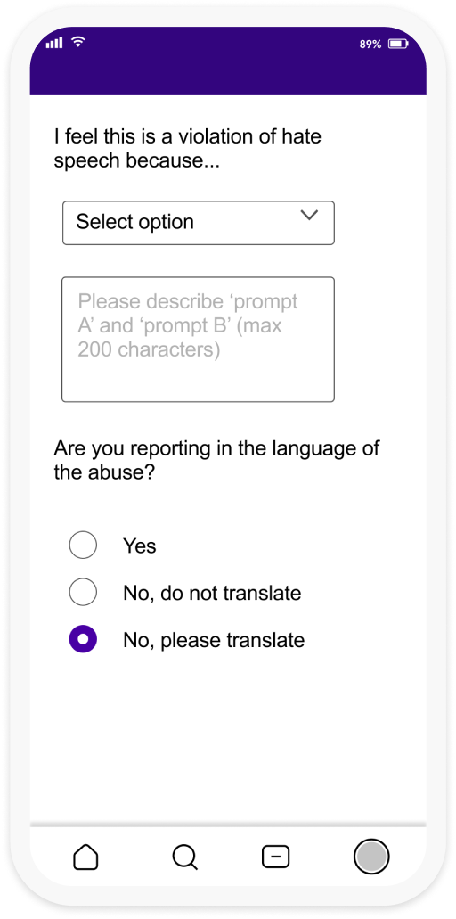 Reporting 2.0 offers an improved reporting flow that allows users to easily access information and effectively communicate the full scope of the abuse they are experiencing. It provides easy access to key terminology and policies. For example, a hover button over the categories of abuse gives a short explanation of relevant policies or community guidelines so the user can ensure they are reporting abuse according to the company’s community guidelines. It also offers the ability to add contextual information to a report, including geographical, cultural and linguistic nuance. It also offers the ability to file a report in the original language of the abuse